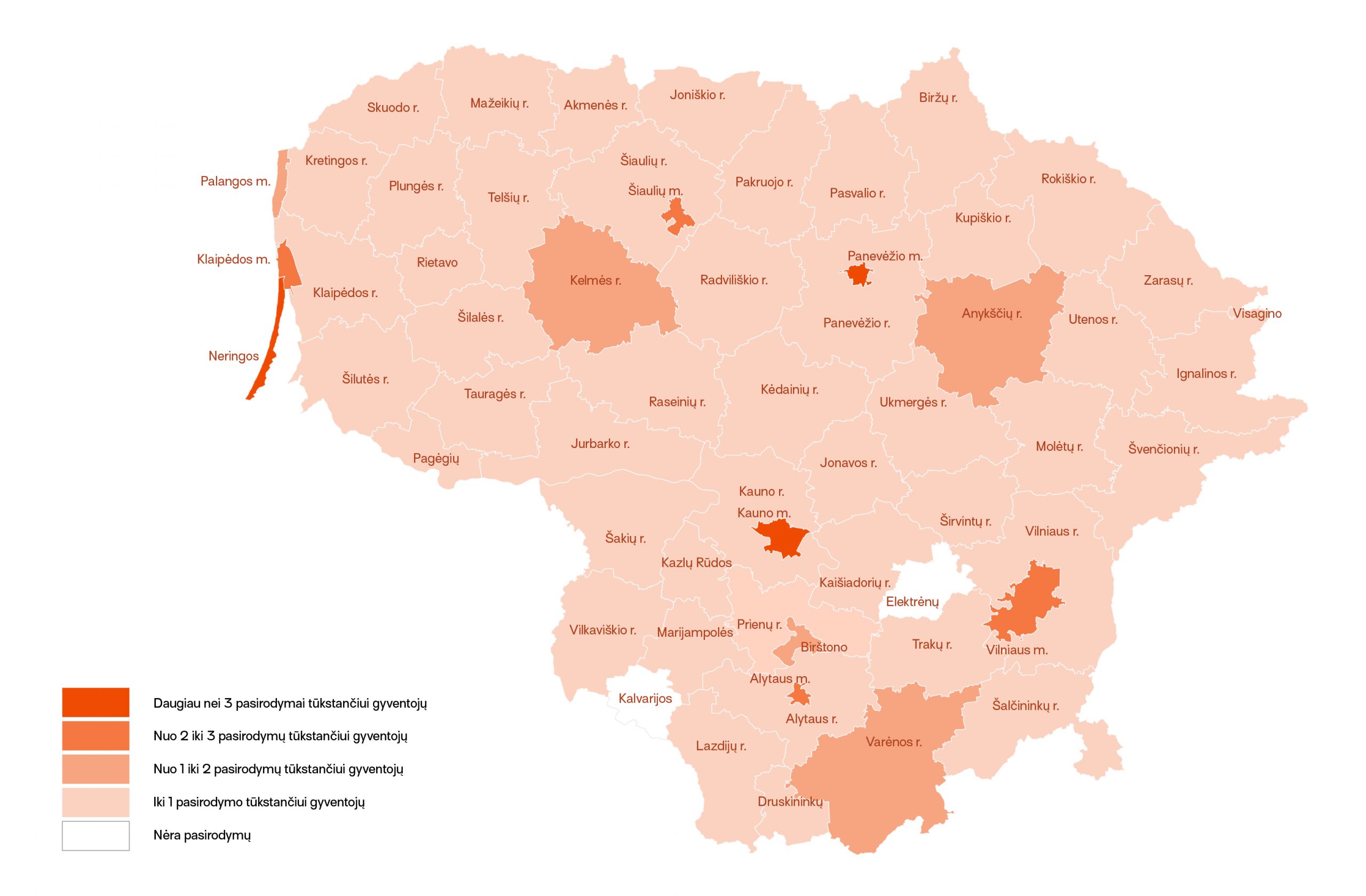 - Panevėžio m. sav. – 3,8 pasirodymai 1000-iui gyventojų